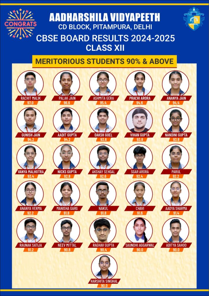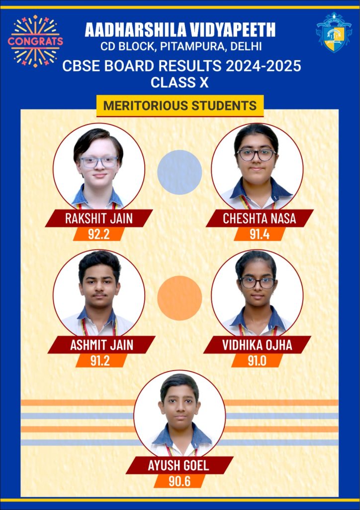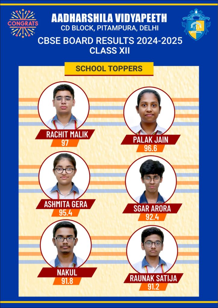 Aadharshila Vidyapeeth boasts of 100% results in class X and XII Board Examination every year. The students bring laurels to the school by their excellent results and outstanding performances.